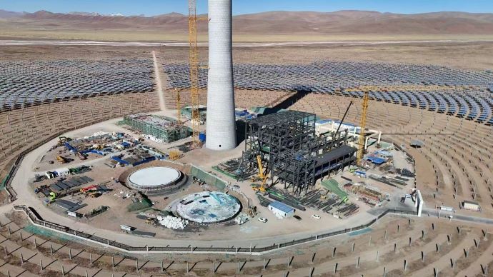 安多土碩光熱項目共配置15927面定日鏡,工人正在緊張有序地進行安裝,計劃于明年3月搭建完畢,塔頂吸熱器擬于明年4月安裝完成。